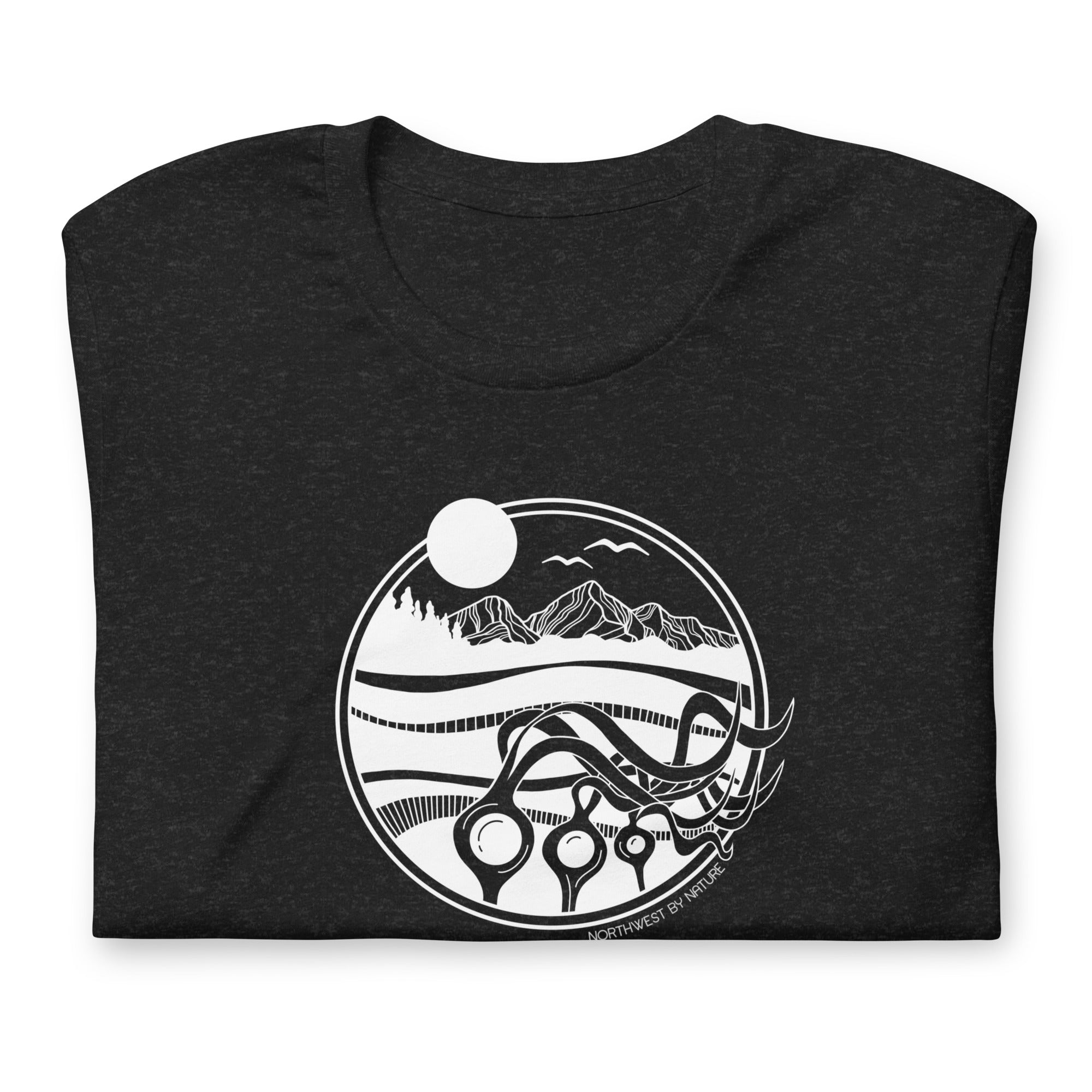 This t-shirt captures the beauty of the Pacific coast kelp. Reaching up to 100 feet in height, these kelp forests thrive in cold, wave-swept, nutrient-rich shallow waters. They are crucial for marine ecosystems, providing habitat for over 1,000 species and removing carbon dioxide. Show your love for the ocean in this cozy tee that is flattering on all bodies.